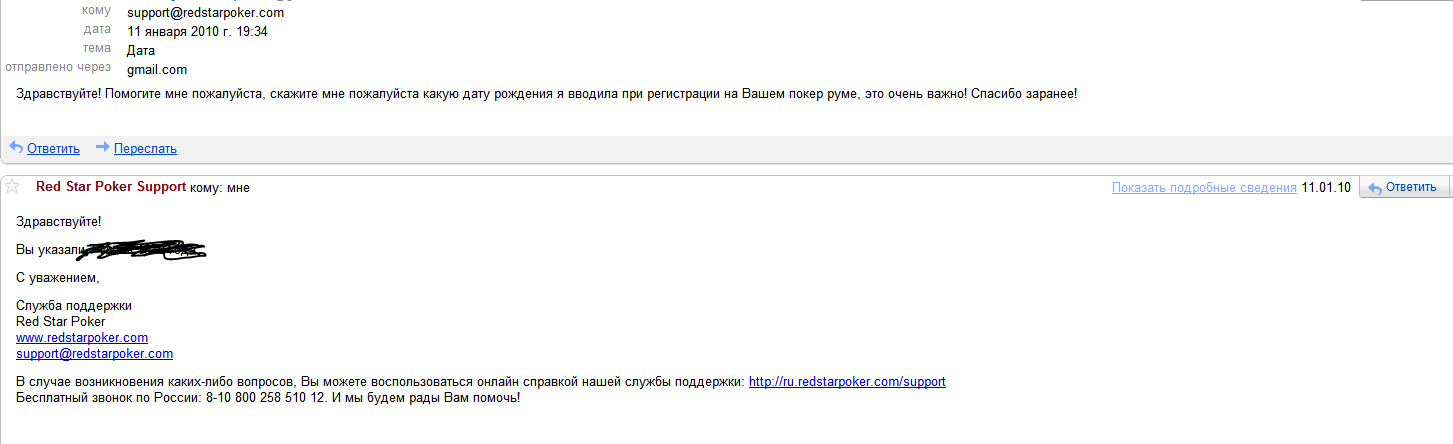 • Один из первых покеррумов ориентированных на русскоязычных игроков. Более 8 лет работы! • Компетентная и быстрая Служба поддержки • Адекватная Служба безопасности • Быстрый вывод средств • Разнообразная система поощрения лояльных игроков • Казино и покер от Microgaming, ставки на спорт Скачать покер клиент можно тут! Служба поддержки – http://www.redstarpoker.ru/support – лайв чат, email Депозит средств: WebMoney, Visa, Mastercard, терминалы QIWI, МТС, Билайн, Мегафон, Монета, QIWI Кошелек, Skrill, Ukash, Neteller и банковский перевод Вывод средств: WebMoney, Visa, Монета, QIWI Кошелек, Skrill, Neteller и банковский перевод Ежедневные фриролы: http://www.redstarpoker.ru/tournaments/freerolls Бонус на первый депозит: • 200% до $1000 • Бонус-код не требуется • Нужно набрать 50 Бонусных Очков за каждый бонусный доллар • Бонус начисляется на ваш денежный счет частями по 10% • Время на отыгрыш бонуса - два месяца Платиновый статус всем игрокам (30% Рейкбэк от Vigorish.ru): • Для получения рейкбэка необходимо при регистрации в Red Star Poker обязательно указать бонус код VG5FREE • Рейкбэк начисляется еженедельно непосредственно на ваш игровой счет. • Рейкбек-период начинается в понедельник в 00:00:00 GMT и заканчивается в воскресенье в 23:59:59 GMT. Рейкбек выплачивается в ночь с понедельника на вторник. Промоакции от Vigorish.ru Бездепозитный бонус в размере $5 для новичков! Акция действует бессрочно! Почитать условия получения: 5$ в подарок от Red Star Poker Гонка $15 000 В апреле мы Red Star Poker проводит рейк гонку с призовым фондом $15000 только для своих игроков! Розыгрыш будет проходить между 100 игроками, набравшими наибольшее количество бонусных очков (Loyalty Points) по результатам месяца. За каждый $1 рейка, уплаченного вами во время игры вы получите 10 бонусных очков (Loyalty Points). Вы так же зарабатываете 10 бонусных очков (Loyalty Points) за каждый $1 комиссии, который Вы потратите на вступительный взнос в турнире. Текущие результаты доступны по ссылке, на сайте -> http://www.redstarpoker.ru/promotions Лотерея Red Star Играя за столами на реальные деньги в октябре, у вас будет возможность ежедневно выигрывать по одному лотерейному билету, который может превратиться в денежный приз, бонус, турнирный билет или в один из сотни других призов! Мы проведем четыре розыгрыша по 250 призов Для того чтобы получить лотерейный билет необходимо сыграть 125 покерных рук в один день за любыми покерными столами на реальные деньги (руки сыгранные в турнирах в зачет не идут). Каждый игрок может получить только один лотерейный билет в день. Текущие результаты доступны по ссылке, на сайте -> http://www.redstarpoker.ru/promotions Последний раз редактировалось Red Star Poker 31 мар 2014, 14:53, всего редактировалось 38 раз(а).