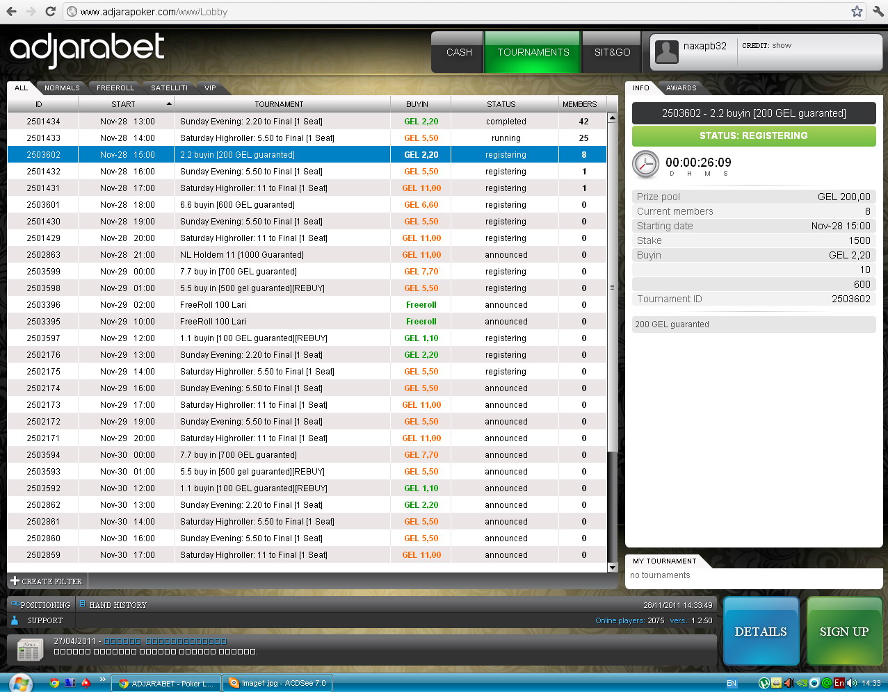 Олег, только так пока: http://www.facebook.com/AdjarabetPoker?sk=info.