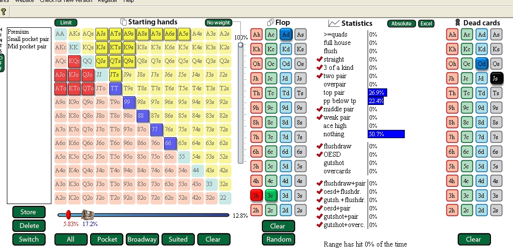 К тому моменту на оппа было около 15 рук, но в целом его тип был более-менее ясен. Только пытаюсь осваивать мультибаррелинг, и поэтому вопрос: годится ли ситуация для такого действия? Озвучу свои мысли при розыгрыше, чтоб вы могли меня поправить, если я на каком-то этапе не прав. Full Tilt Poker $0.25/$0.50 No Limit Hold'em - 5 players The Official 2+2 Hand Converter Powered By DeucesCracked.com UTG: $16.50 CO: $69.55 Hero (BTN): $53.60 SB: $51.05 BB: $75.30 Pre Flop: ($0.75) Hero is BTN with Q J![]() 1 fold, CO calls $0.50, Hero raises to $2.25, SB calls $2, 1 fold, CO calls $1.75 стандартно изолирую фиша на CO Flop: ($7.25) A 3 3 (3 players)SB checks, CO checks, Hero requests TIME, Hero bets $4.50, SB calls $4.50, CO folds решил поставить немного. Даже на такой размер ставки должны выбросить все непарные руки и руки без туза. В случае кола от SB уже здесь решил, что при подходящей доске буду мультибаррелить. Turn: ($16.25) K (2 players)SB checks, Hero bets $11, SB calls $11 после кола SB моего контбета, у него или карманки или туз, по типу AT-AQ. Выходит король и я решаю ставить еще раз - после второго барреля на таком терне все карманки пойду в пас. На случай его возможного колла даю не очень большой бет, чтоб: 1) удешевить себе действие в случае его чек/рейза 2) на ривере сунуть остаток стэка таким образом, чтоб он все еще не был привязан со своим тузом к поту и мог выбросить на мой пуш (это я у Гальфонда подсмотрел )River: ($38.25) 2 (2 players)SB checks, Hero bets $35.85 all in после его колла на терне я однозначно кладу его на средней силы туза и согласно плану запихиваю остаток сэка Хорошо ли, особенно если учесть, что ривер ничего не изменил? |