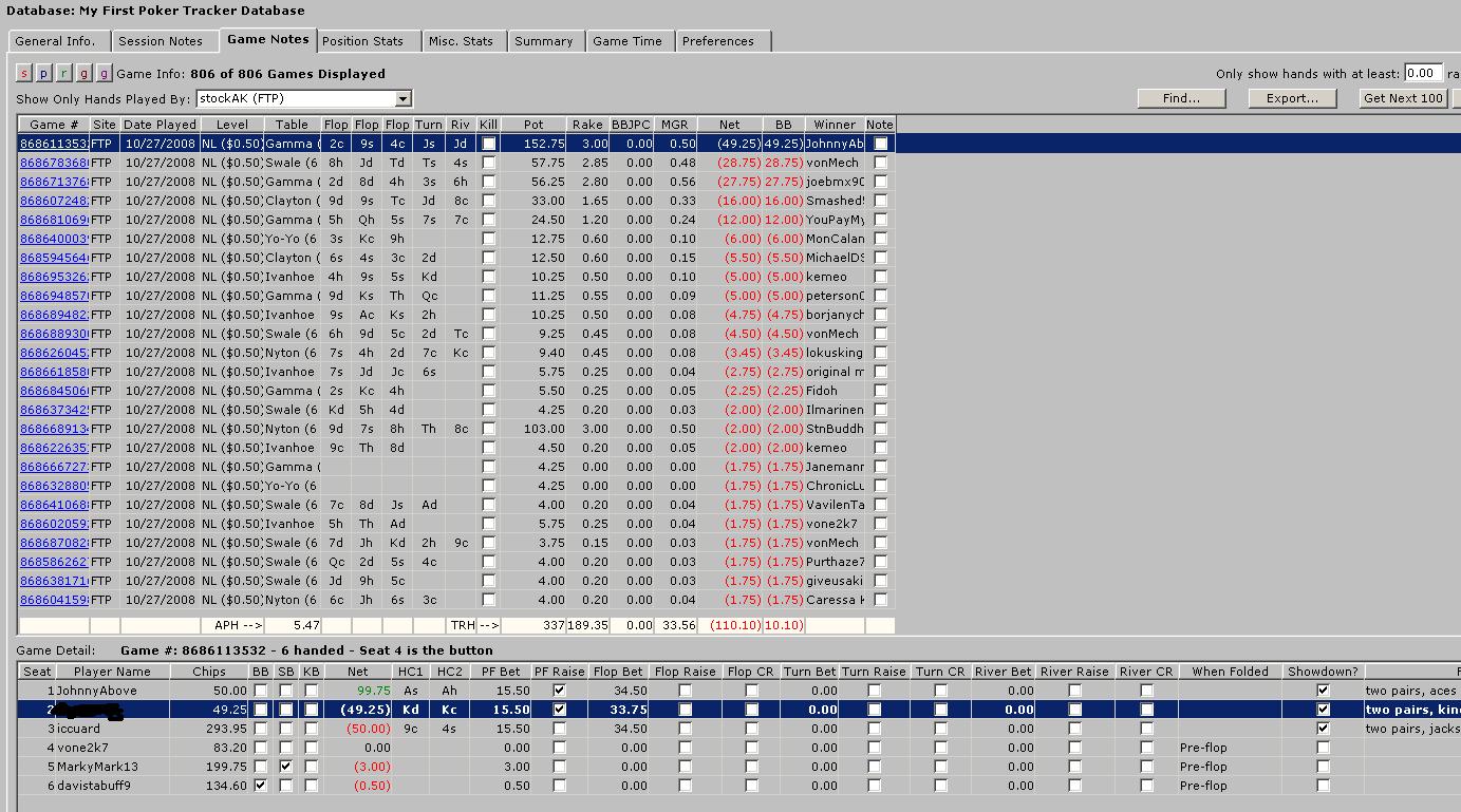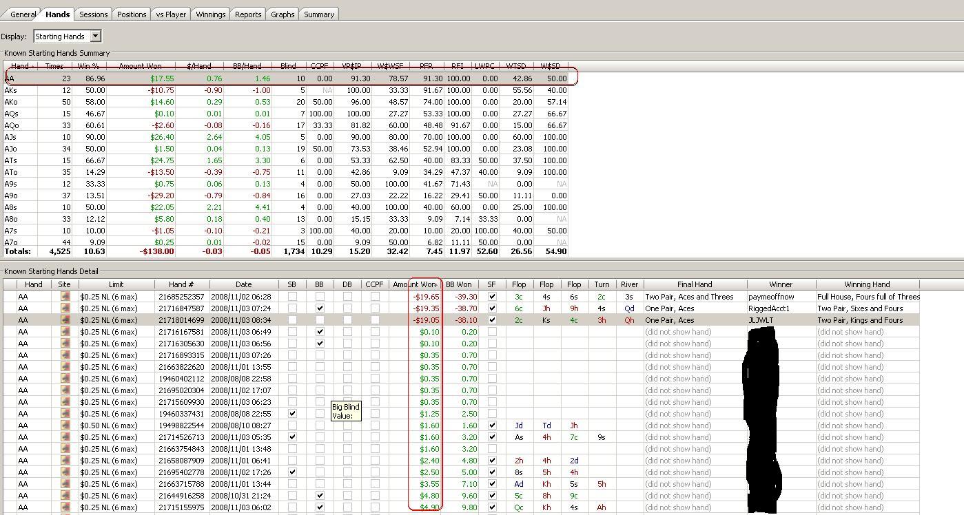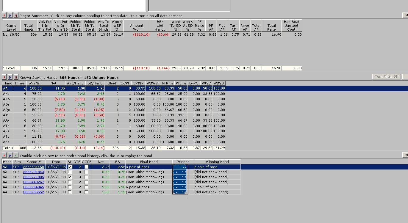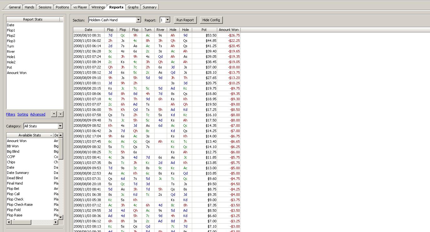 Тоже не нашел этой опции в ПТ3. Сам пока пользуюсь sesions- by time, там можно отсортировать по проигрышу руки за сессию. Неудобно, т.к. за день несколько сессий.