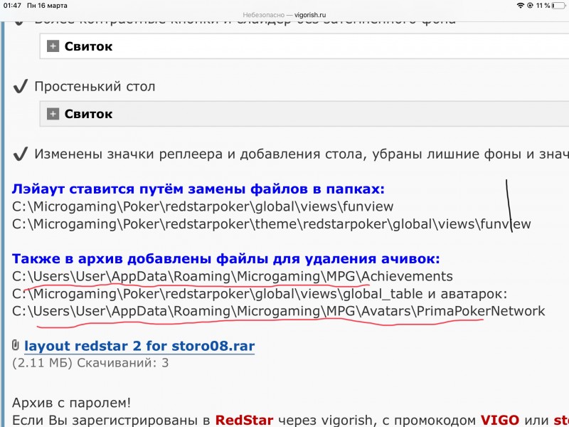 Ну я думал ты читаешь этот пост - почитай его внимательно, и я думал что ты ставишь версию 2.0 (как у меня на стриме), рекомендую её и ставить, там все точно работает (пароль к архиву такой же как и к версии 1). Просто первая версия лейаута была под Редкингз, рум закрылся, но он подходит и под Редстар (рум той же сети). |
