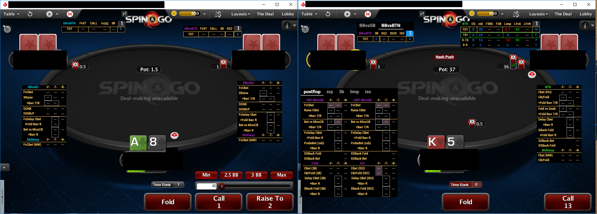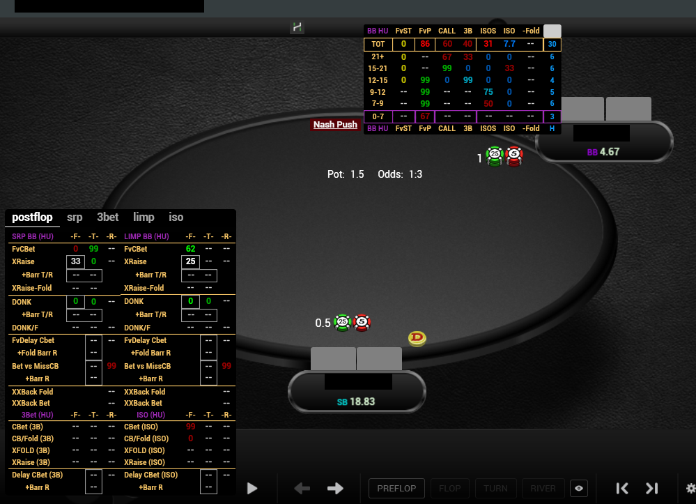 3) Статы выводятся в зависимости от кол-ва рук на опа. Зачем нам куча стат с подробной разбивкой по блайндам если на оппонента рук всего ничего - там же полный рандом в итоге. Правильней будет объединить разные размеры стека.