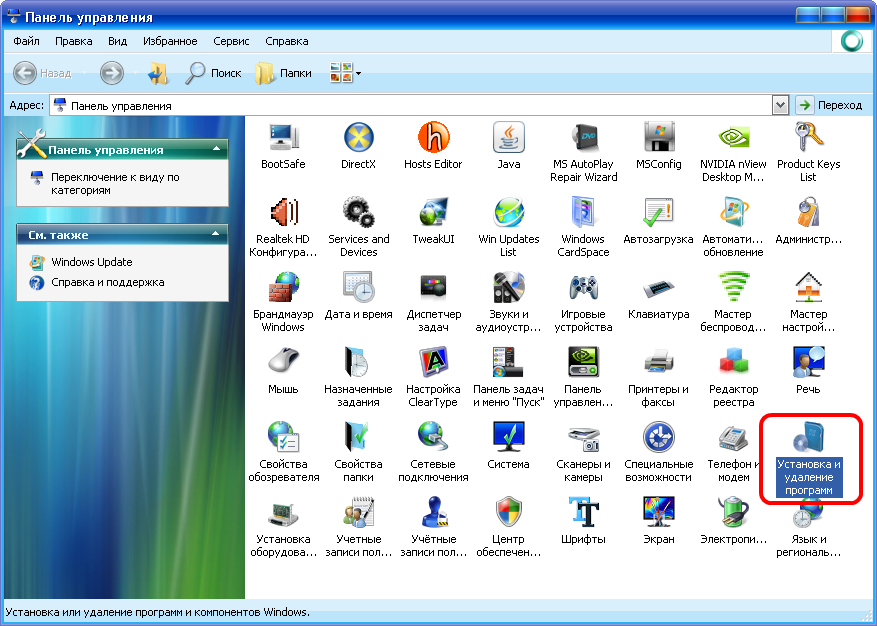 "Установка и удаленье программ" и дважды кликаем мышкой по ней.
