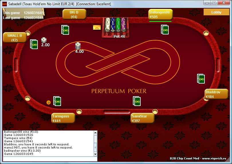 Документация См. спойлеры ниже. Для установки модификации необходимо заменить файл покер клиент pokerclient.jar новым. После этого запустите покер клиент Entraction, проверьте на месте ли инфо-баннер InstaMod: Если этого нет, а у вас Windows 7/Vista, клиент установлен в Program Files, то читаем это: http://otvety.google.ru/otvety/thread?t ... 5f3da44187 Скопируйте файл InstaSettings.exe из комплекта поставки в директорию покер клиента Entraction. Эта программа лишь ищет Java машину на компьютере и запускает код, содержащийся в файле pokerclient.jar. Без отдельно установленной Java машины она не запустится и сообщит ваш об этом. Требуется JVM версии не ниже 1.5, как и для покер клиента Entraction. Скриншот: По нажатию на кнопку "ОК" настройки модификации будут сохранены в файл InstaMod.ini и окно закроется. Настройки загружаются только при запуске покер клиента, поэтому после изменения настроек перезапустите покер клиент, если он был запущен. В стадии бета-версии. Смысл: отображать HUD без посадки за стол. Проблема в том, что трекеры не могут отобразить HUD, пока игрок не сядет за стол и не подождет хотя бы одной руки. Это происходит из-за того, что трекер не производит распознавания никнеймов игроков. Модификация же имеет доступ к никнеймам, поэтому, чтобы трекер быстро отобразил HUD, она сгенерирует фейковую руку, где все игроки сбрасывают карманные карты, кроме большого блайнда. Влияют ли фейковые руки на статистику игроков? Не проверял, но по идее серьезно что-то изменить они не должны. Владельцы же Poker Tracker 3 могут для сети Entraction настроить сбор Observed Hands в отдельную базу. Для включения функции установите соответствующий чекбокс в настройках модификации. Запустите клиент и откройте любой стол. Модификация по прошествии 2-х секунд сгенерирует фейковую руку в директорию, указанную в настройках (по умолчанию InstaHUD). По прошествии еще максимум 5 секунд трекер "подхватит" эту руку и отобразит информацию по игрокам в HUD. Известные проблемы: