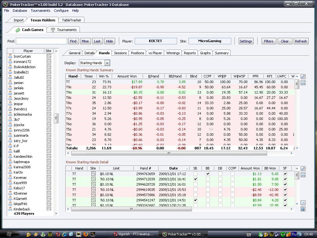 FoxPro:Здравствуйте. Поставил PT3 триал версию, импортировал hands history - гляжу на закладке Hands>Starting hands отображаются руки с 22 по TT а на закладке Positions не показывает результаты по позиции 4,5.Вроде бы триал версия должна быть полнофункциональная (ну кроме ведения одной базы данных) Или же я что-то не так сделал?