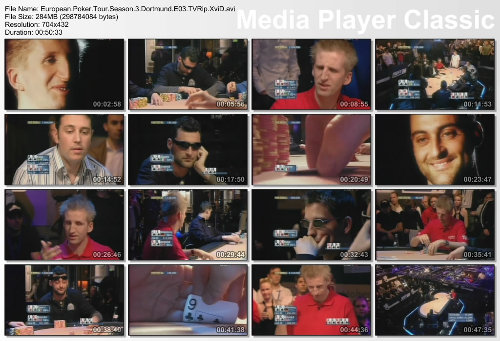 European Poker Tour - один из самых богатых и популярных покерных туров. В третьем сезоне турниры EPT проходили в Барселоне, Лондоне, Копенгагене, Дортмунде и Варшаве. Проведение EPT спонсирует Poker Stars. 3-й сезон, Дортмунд(4-й день, финальный), третий эпизод телетрансляции Турнир проводился 8-11 марта 2007 Комментарий: Эрик Шахбазян и Григорий Торосян Видео: 532 Kbps, 25.0 fps, разрешение 704*432 (16:9), XVID Mpeg-4 Аудио: 256 Kbps, 48000 Hz, 2 каналов, AC-3 ACM Codec, VBR Длительность: 00:50:33 Качество: TVRip Видеозапись предоставил пользователь, пожелавший остаться неизвестным. 1.3 Интересы конференции как сообщества игроков и места общения состоят в том, чтобы сообщения в нем размещались не из рекламных соображений, а по принципу ценности для всех участников и читателей.