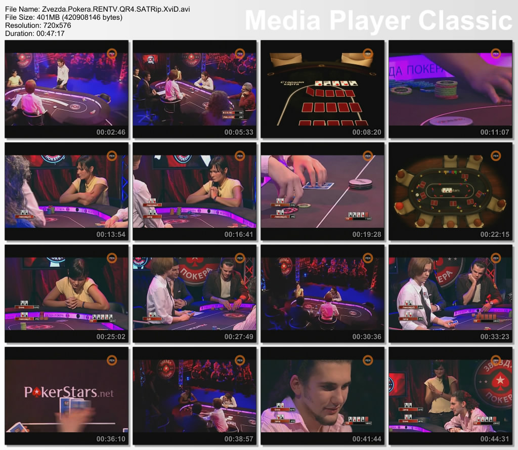 Видео: 1074 Kbps, 25.0 fps, разрешение 720*576 (5:4), XVID Mpeg-4 Аудио: 112 Kbps, 48000 Hz, моно, AC-3 ACM Codec, VBR Длительность: 00:47:17 Сайт проекта - http://zvezdapokera.ru/