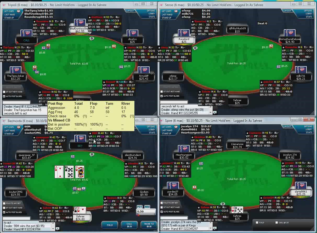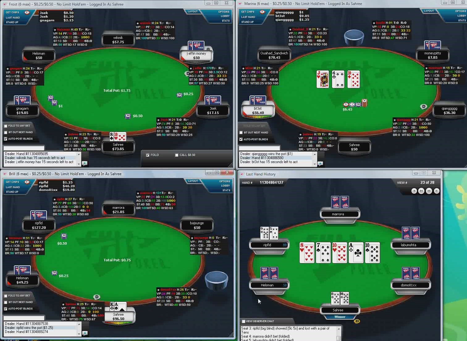- Лимит NL25, игра за 4 столами, рум - FullTilt (длительность видео 39 минут)