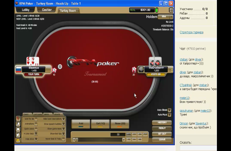 Обучающе-ознакомительное видео в руме RPM Poker