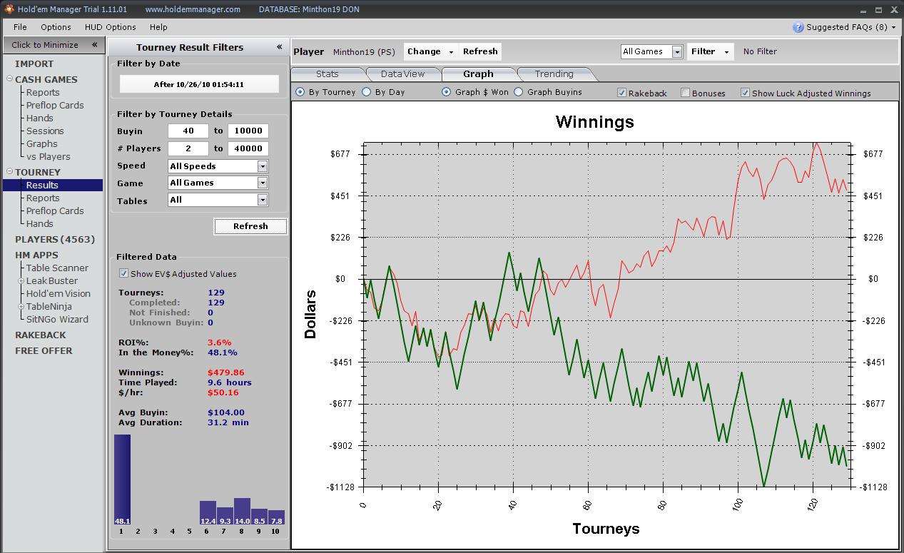 На моих ненаглядных старзах снова дурацкая профилактика,игры нет,а значит я просто уже невправе перед собой откладывать создание этого колодца!) Кстати,в описании того,что же такое "колодец" прям очень пугающая формулировка,я уж было подумал,а не много ли я на себя беру,но дневник я както просто не смогу наверно достаточно наполнить интересной информацией,а колодец всё же както полегче,надеюсь будем поддерживать его на плаву вмесет.Надеюсь моей квалификации хватит=) История восхождения проста как мир,если будет желание-я вам расскажу в красках)А так,через несколько месяцев не очень понятной игры я наткнулся на доны,пересмотрел ВОДы по ним(ОГРОМНОЕ спасибо небезызвестному gnat777,какие бы не были воды,они просто дали толчок,и убедили меня в мысли - "Я МОГУ")и начал катать в месяце эдак наверно в июне,июле.Не мне судить конечно,но вроде получается добрался до 50ок,впринципе даже после ежемесячно кешаута вполне по банкроллу валить на 100ки,чем наверно в скором времени и займусь.Наверно немного сумбурно получилось и не так чтоб очень конструктивно,но у нас всё впереди и я обязательно расскажу всё более подробно=) успехов нам всем,спрашивайте и услишите=) P.S. совсем забыл о самом главном,статистика,кудаж без неё,как раз получилось приятное сочетание букавок даблв=)если у кого есть возможность предоставить мне шаркскоповскую "лесенку"-буду благодарен) Никнейм Всего игр Ср. профит Ср. бай-ин Ср. ROI Профит Данные Комната minthon19 9356 +$3.45 $62 7% +$32293 LWWLWWLL PokerStars UPD: появился мой вод=) найти можно тут http://rapidshare.com/files/331741815/V ... thon19.swf или /section71/torrent5220.html Вод номер два - http://rapidshare.com/files/339463763/2 ... 9.swf.html или /section71/torrent5338.html А теперь 10ки =) http://rapidshare.com/files/355622605/V ... 19.swf.htm или /section71/torrent5703.html Скайп minthon19 Последний раз редактировалось Minthon 01 фев 2011, 21:58, всего редактировалось 16 раз(а).