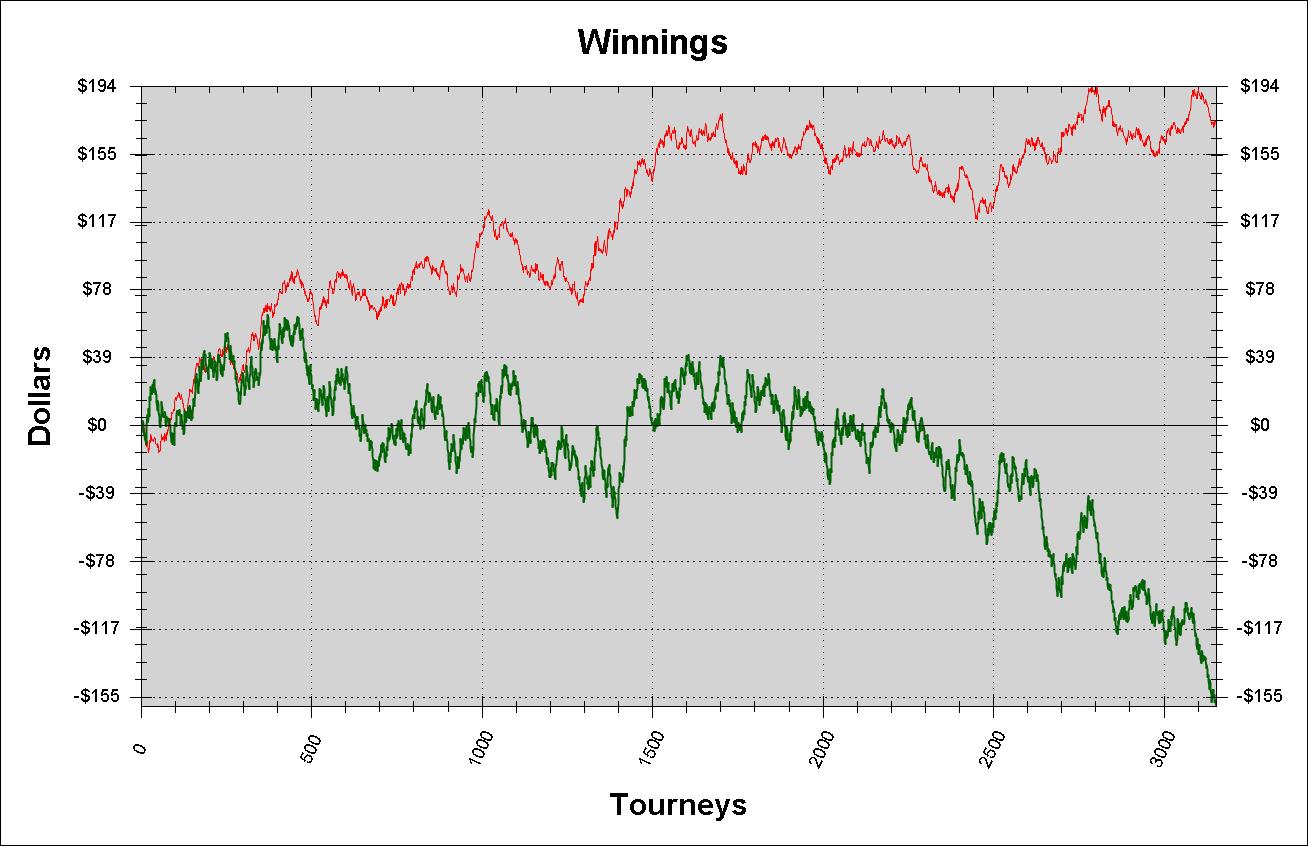Lb20001:Хм, как это катая 300 турниров в день не рассчитывать в топ 3, если выдержать этот график то 99% будет топ 1. А по графику, в энтракшне проще играть 5-ки чем 2-ки, за 1е играют пассивные фиши, а за 2е агрессивные фиши, из-за этого такой и график. Но если на лидерборд - топ1 играть, то думаю неплохо.