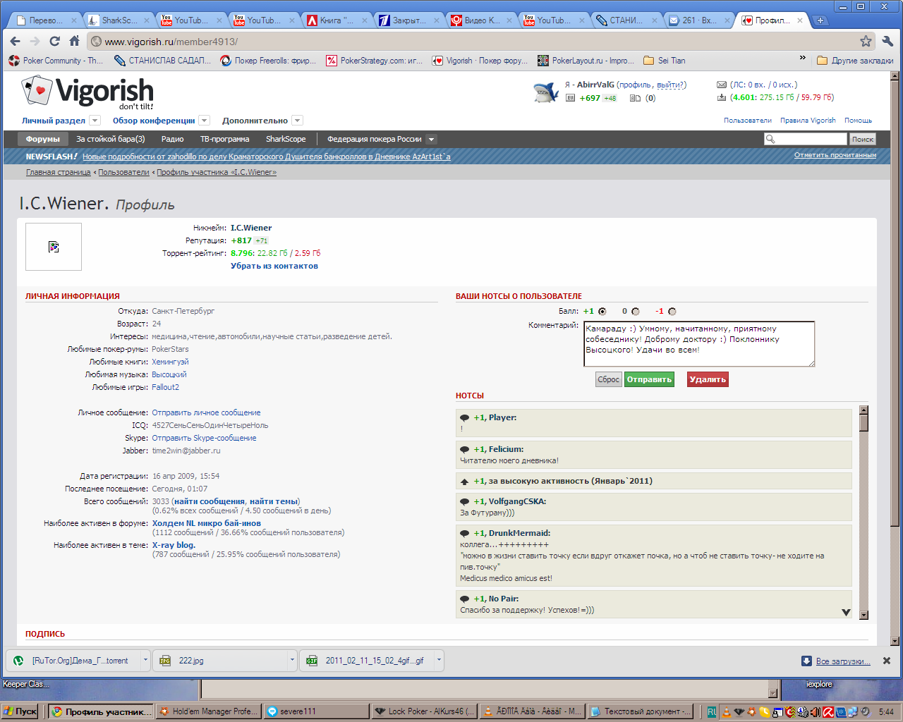Регламент Конкурса 1. Организаторы и Спонсоры Конкурса 1.1. Организаторы: конференция Vigorish. 1.2. Спонсор Конкурса: покерная комната GoPlay Club. 2. Участники Конкурса 2.1. В конкурсе принимают участие все дневники и колодцы размещенные на Vigorish; 2.2. Исключение составляют следующие разделы «Покерные комнаты и школы в сети Интернет», «Программное и аппаратное обеспечение», а также подразделы «Новости покера», «Медиатека игрока», «Пресс-релизы, трансляции и анонсы событий», «Ввод-вывод и обмен денег», «Реклама и объявления», «Клуб хулиганов», «O работе конференции» и др. 3. Порядок проведения и временные рамки 3.1. Конкурс проводится ежемесячно, начиная с момента публикации Регламента; 3.2. Допускаются внесения изменения в Регламент до 15 числа (включительно) каждого календарного месяца; 3.3. Подведение результатов Конкурса осуществляется в течении первых 3х дней каждого календарного месяца. 4. Определение победителя 4.1. Лучшим дневником/колодцем признается тот, который наберет наибольшее число баллов; 4.2. При одинаковом количестве баллов (разница не более 5 голосов) позиция в рейтинге определяется количеством просмотров дневника/колодца; 4.3. В исключительных случаях и по обоюдному желанию участников, возможно объединение призовых мест с разделением призового фонда на равные доли; 4.4. Призеры Конкурса исключаются из рейтинга (участия в Конкурсе) на 2 месяца; 4.5. В спорных моментах окончательное решение принимает Супервизор Конкурса (п.9). 5. Порядок подсчета баллов 5.1. Подсчет числа баллов ведется автоматически средствами конференции Vigorish; 5.2. В подсчете баллов учитывается рейтинг сообщений дневника/колодца только для последних 30 дней; 5.3. В подсчете баллов участвуют только сообщения автора дневника/колодца; 5.4. Пост автора приносит ему баллы, если рейтинг поста +3 и более. 6. Отображение текущих баллов и рейтинг 6.1. Текущее количество баллов дневника/колодца отображается справа от темы; 6.2. Рейтинг и позиции дневников/колодцев отображаются в текущей теме. 7. Призовой Фонд* 7.1. Основной призовой фонд €300 7.1.1. €200 выплачиваются победителям Конкурса на счета GoPlay Club 10..12 числа каждого месяца за предыдущий: 1 место - €100 2 место - €60 3 место - €40 7.1.2. €100 - добавленный призовой фонд специального турнира, приглашения на который получают участники Конкурса в соответствии с Регламентом Конкурса. Регламент специального турнира Название: GoPlay Vigorish Legendary Buy in: Freeroll freezeout, 2000 фишек Levels: 12 минут Время и дата: 19:00 по мск, 5ое число (если не указано другое) каждого календарного месяца Условие участия: TOP-30 игроков-призеров Конкурса, в том числе и серые пользователи. Регистрация по паролю высылаемому в личную почту Vigorish за 30 минут до начала турнира. 7.2. Добавленный призовой фонд €200 7.2.1. Премии выплачиваются победителям Конкурса на счета GoPlay Club, если игроки в течение 30 дней со дня получения основной премии выполняют условие по VIP-очкам: 1 место - €100/не менее 1000 VIP-очков 2 место - €60/не менее 600 VIP-очков 3 место - €40/не менее 400 VIP-очков 7.2.2. При выполнении п.7.2.1 игроку необходимо выслать заявку на tournaments@goplayclub.com для получения дополнительной премии. В заявке следует указать логин на GoPlay Club и логин на Vigorish. После проверки премия перечисляется на счет игрока в GoPlay Club. 7.3. Призовые выплаты в Конкурсе не вычитаются из выплат по другим бонусам или акциям. 7.3.1. GoPlayClub оставляет за собой право использовать 