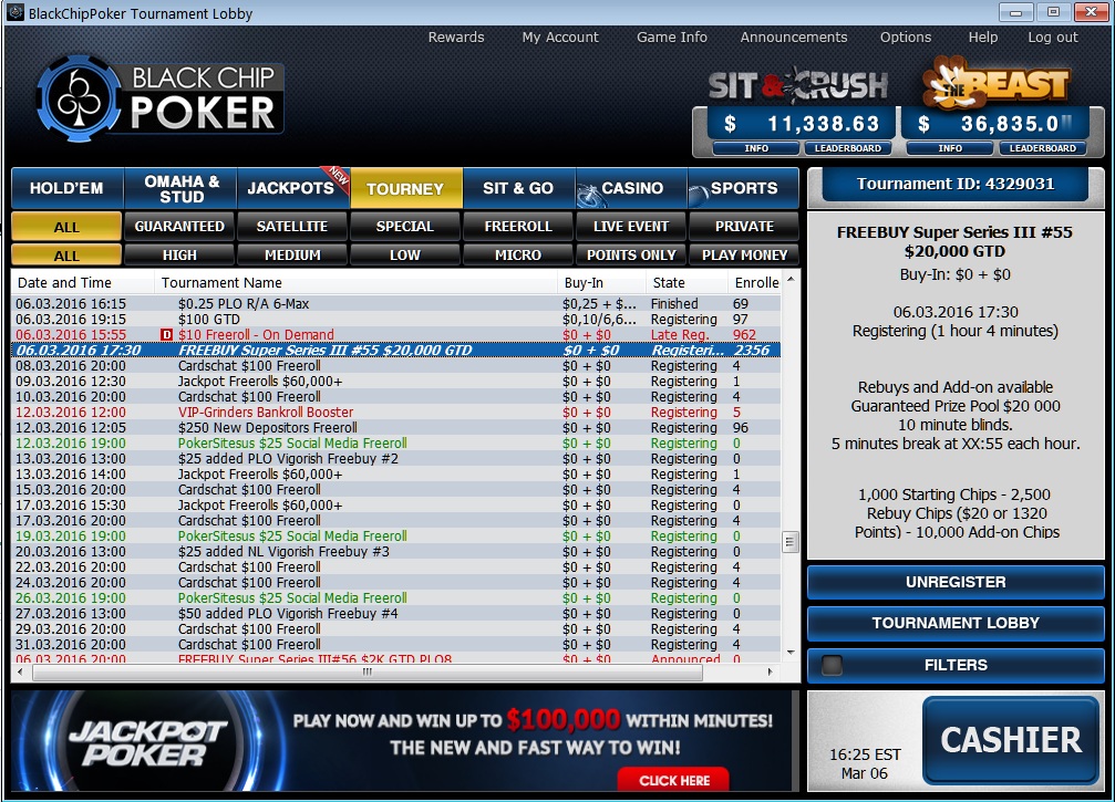 Условия участия: регистрация с кодами vigo1 либо vigo2, новым игрокам достаточно зарегистрировать аккаунт по этой ссылке Вход на турниры: по паролю, в этой теме наши игроки могут оставлять заявки на участие, указывая свой ник в руме. Турниры легко найти в лобби, TOURNEY - PRIVATE. Краткое расписание серии фрироллов: Vigorish Freebuy series 6 марта, 21-00 мск Баин: 0$+0$ ребай 1$ 50$ gtd Cтартовый стек: 2000, уровни по 10 минут. Ребай за 1$ 2000 фишек, аддон 1$ 4000 фишек. 13 марта, 20-00 мск Баин: 0$+0$ ребай 0,5$ 25$ gtd Cтартовый стек: 2000, уровни по 10 минут. Ребай за 0,5$ 2000 фишек, аддон 0,5$ 4000 фишек. 20 марта, 20-00 мск Баин: 0$+0$ ребай 0,5$ 25$ gtd Cтартовый стек: 2000, уровни по 10 минут. Ребай за 0,5$ 2000 фишек, аддон 0,5$ 4000 фишек. 27 марта, 20-00 мск Баин: 0$+0$ ребай 1$ 50$ gtd Cтартовый стек: 2000, уровни по 10 минут. Ребай за 1$ 2000 фишек, аддон 1$ 4000 фишек. Первый турнир 6 марта в 21-00 мск. NL Holdem 50$ добавлено, вход бесплатный, затем ребаи по 1$, за каждый ребай даётся 2000 фишек, аддон 4000 фишек. Каждый вложенный доллар идёт в добавленный призовой фонд. Делаем заявки, пароли будут разосланы посредством личных сообщений в 20-00 мск (примерно за час до старта турнира) |