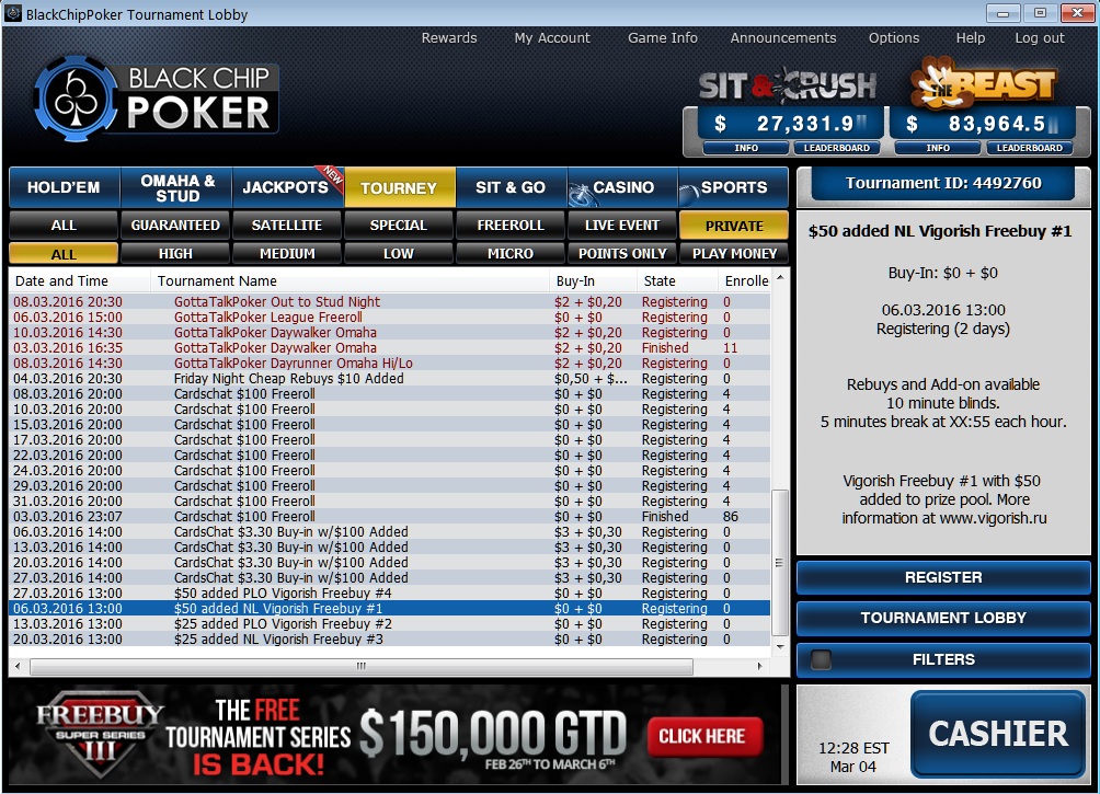 Vigorish и Black Chip Poker представляют серию их 4-х приватных фриролов, только для наших игроков!