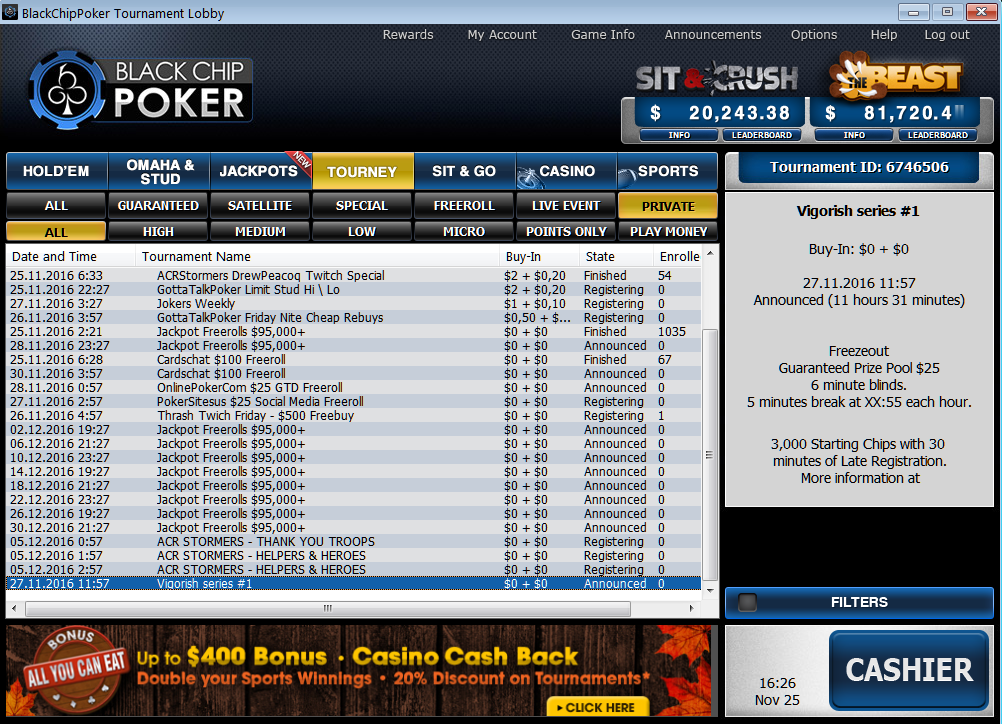 Vigorish и Black Chip Poker представляют минисерию из 4-х турниров,