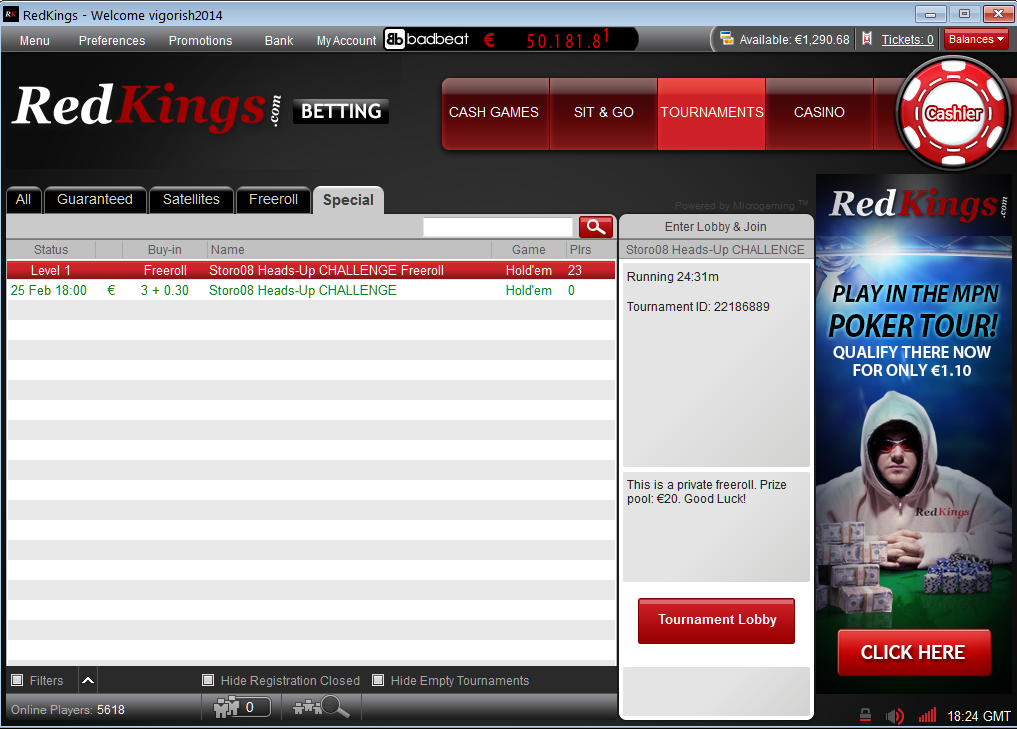 Vigorish и RedKings* объявляют новые турниры !