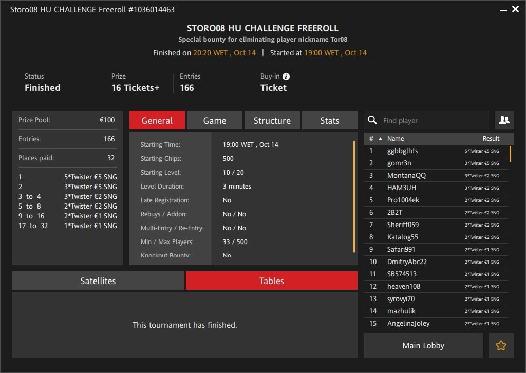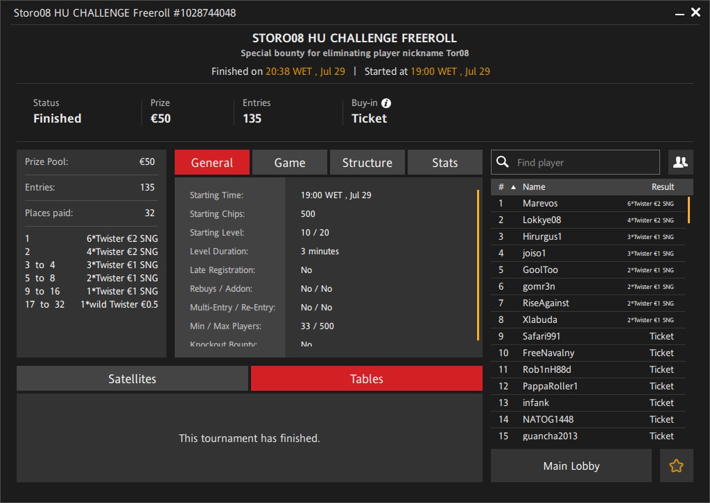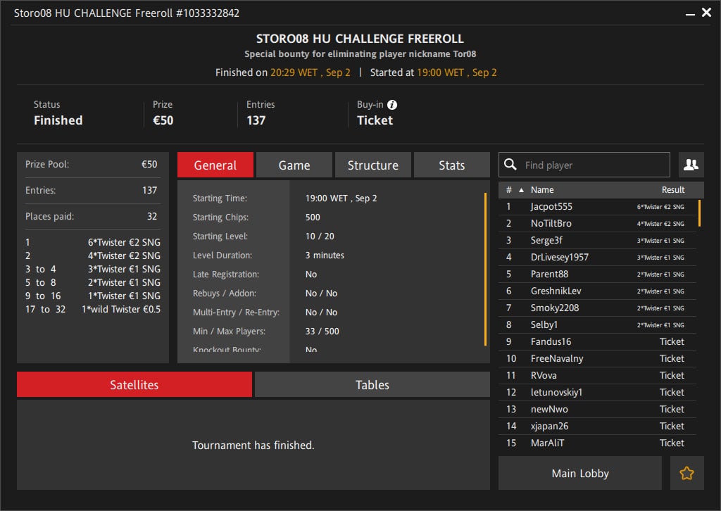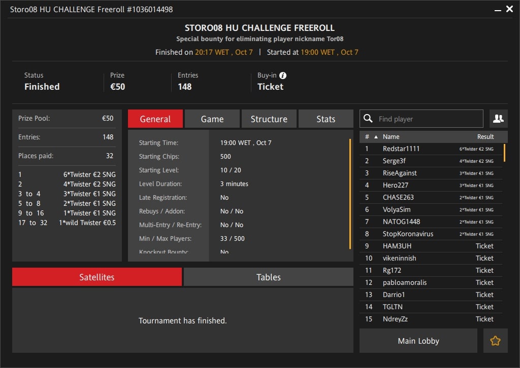 Поздравляем победителя FrееNаvаlnу и всех призёров пятничного турнира "Storo08 Heads-Up Challenge"!