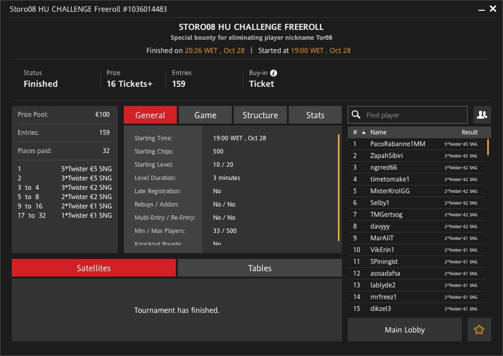 Поздравляем победителя infank и всех призёров пятничного турнира Storo08 Heads-Up Challenge!
