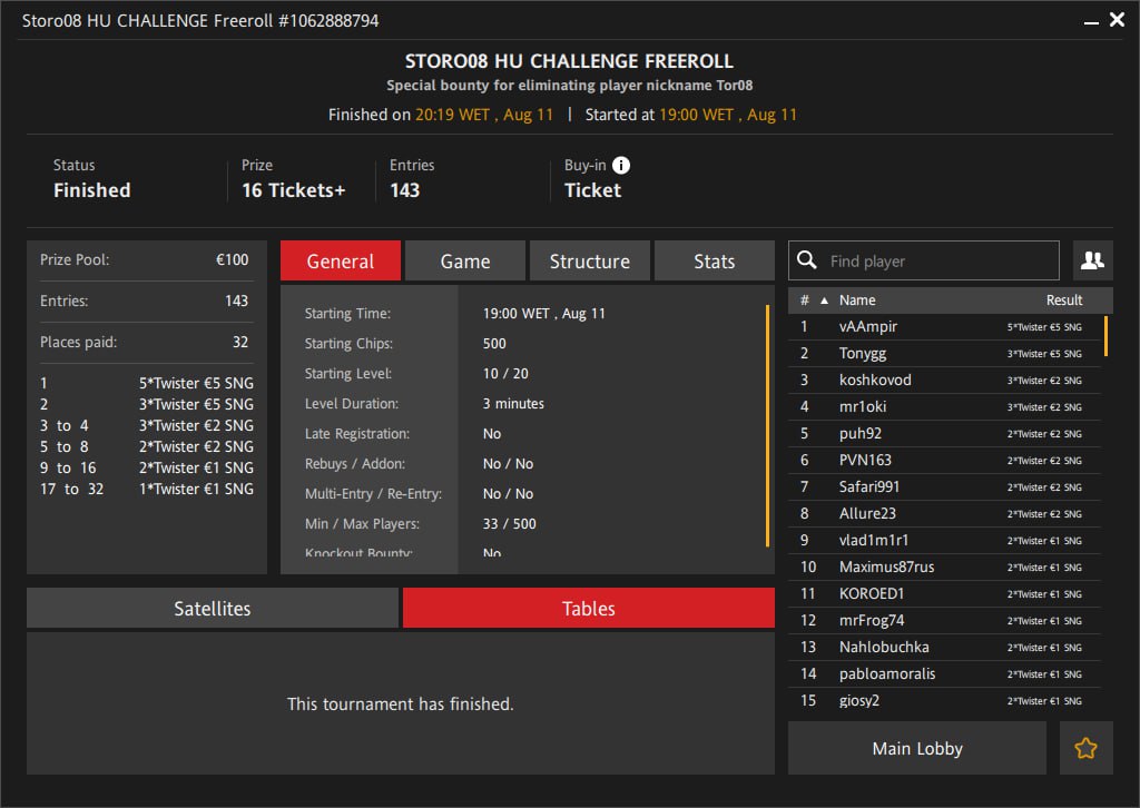 Vigorish и RedStar представляют серию турниров Storo08 HEADS-UP CHALLENGE