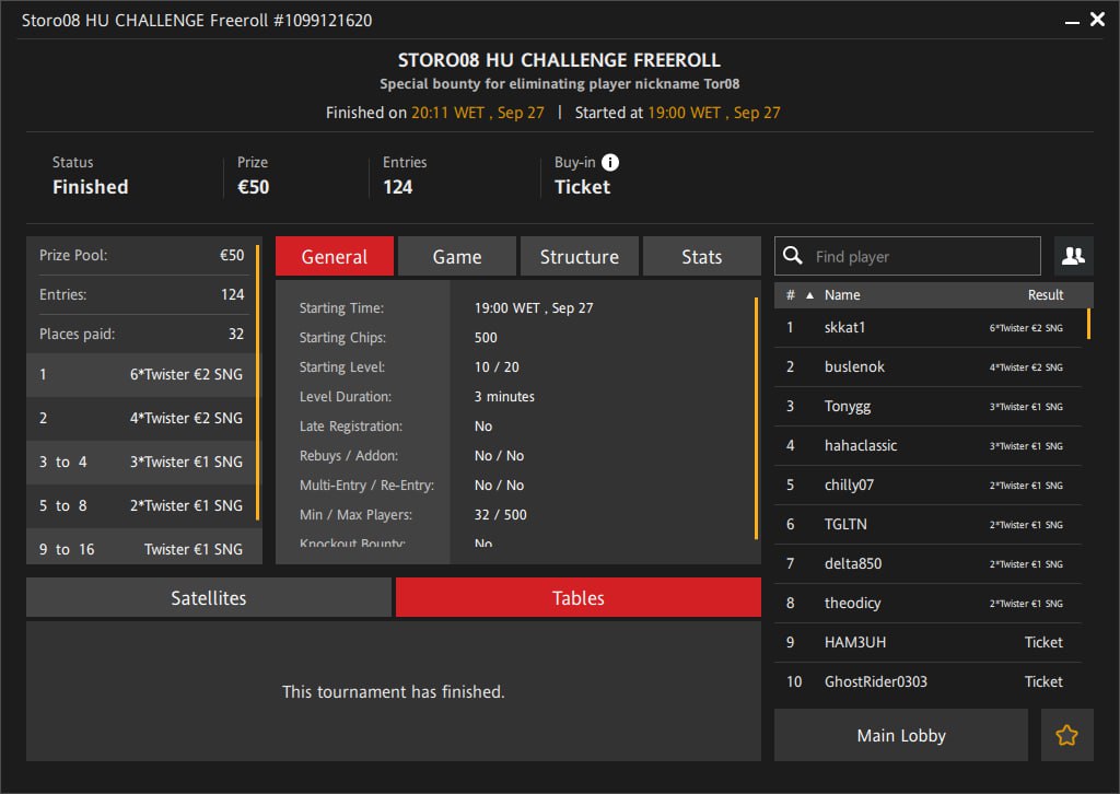 - 3) 32 призовых места во фрироллах +в некоторых определенное баунти € 10+ кэшем тому кто выбьет игрока с ником Tor08