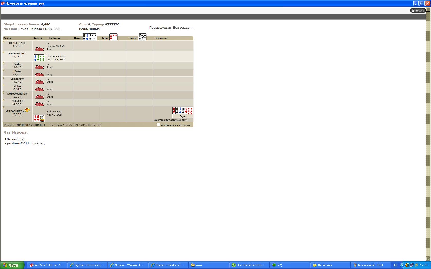 мдаа вот раздали мне четвертый раз КК ( все три предыдущих я выиграл) и сижу думаю, сейчас продую... Так к сожалению и оказалось... хотя сам ступил, не поверил в туза у оппа :(( Что то не заладилась сегодня у наших битва...