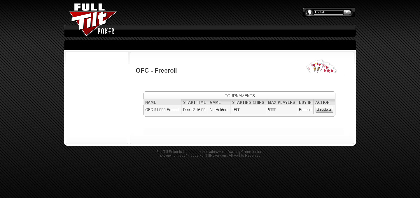 Организаторы: http://www.onlineforumchallenge.com Место проведения: Full Tilt Poker Турниры: Фриролл + Турнир с баином Фриролл: OFC FREEROLL EVENT - суббота, 12 декабря, 2009 в 3:00pm EST Призовой фонд: $1,000 + $500 на призы победившему форуму! ID 124224298 Турнир с баином: OFC BUYIN EVENT - воскресенье, 13 декабря, 2009 at 3:00pm EST $24 + $2 Buy-In Призовой фонд: $14,000 $2,000 добавленный призовой фонд игроков! $1,000 на призы победившему форуму! Остальная сумма в виде бонусов в Full Tilt Poker и пакетов на World Series of Poker Main Event. ID 120307890 Полное описание битвы здесь: http://www.onlineforumchallenge.com/mls.search?id=OFC&menu=SignUpForm&ntEventsID=124 Предложение рума игрокам Vigorish От Регуляр.ру -> http://www.regulyar.ru/bonuses/offer/ind-fulltiltpoker Я хочу участвовать. Что нужно делать?