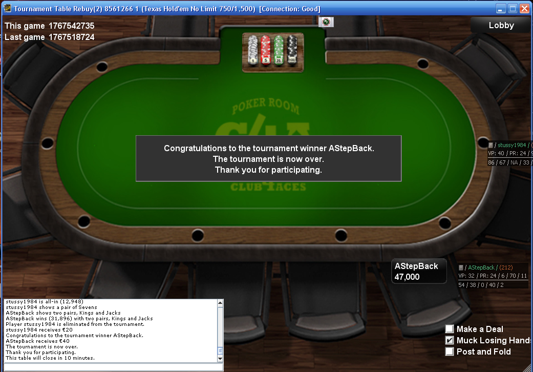 Если игрок, не отвечающий условиям, описанным выше (читай, просто получивший пароль на игру), займет призовое место в турнире, он не получит рейтинговых очков за призовое место, кроме того, его денежный выигрыш может быть аннулирован. В турнирах во вкладке "Special" найдите турнир с названием "Vigorish Liga ***" Турнир обычно создается за 2-3 дня до начала! CУПЕРФИНАЛ ДЛЯ ТОП 20 СОСТОИТСЯ 04.09 В 20 ПО МСК Игроки будут зарегистрированы автоматически. Размер начальных стеков согласно оговоренным условиям. Не пропустите ![]() Последний раз редактировалось c4a.com 30 авг 2010, 15:24, всего редактировалось 16 раз(а).