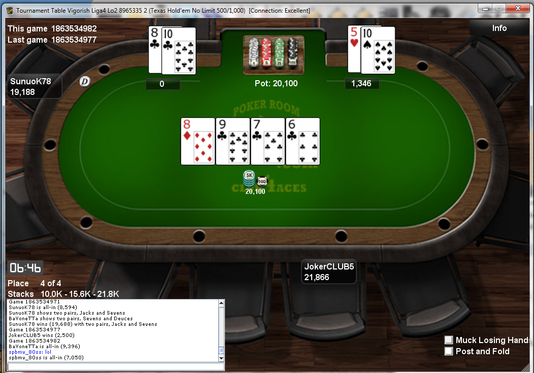 Если игрок, не отвечающий условиям, описанным выше (читай, просто получивший пароль на игру), займет призовое место в турнире, он не получит рейтинговых очков за призовое место, кроме того, его денежный выигрыш может быть аннулирован. В турнирах во вкладке "Special" найдите турнир с названием "Vigorish Liga ***" Турнир обычно создается за 2-3 дня до начала! CУПЕРФИНАЛ ДЛЯ ТОП 20 СОСТОИТСЯ XXX В XXX ПО МСК Игроки будут зарегистрированы автоматически. Размер начальных стеков согласно оговоренным условиям ![]() Последний раз редактировалось c4a.com 08 ноя 2010, 10:55, всего редактировалось 13 раз(а).