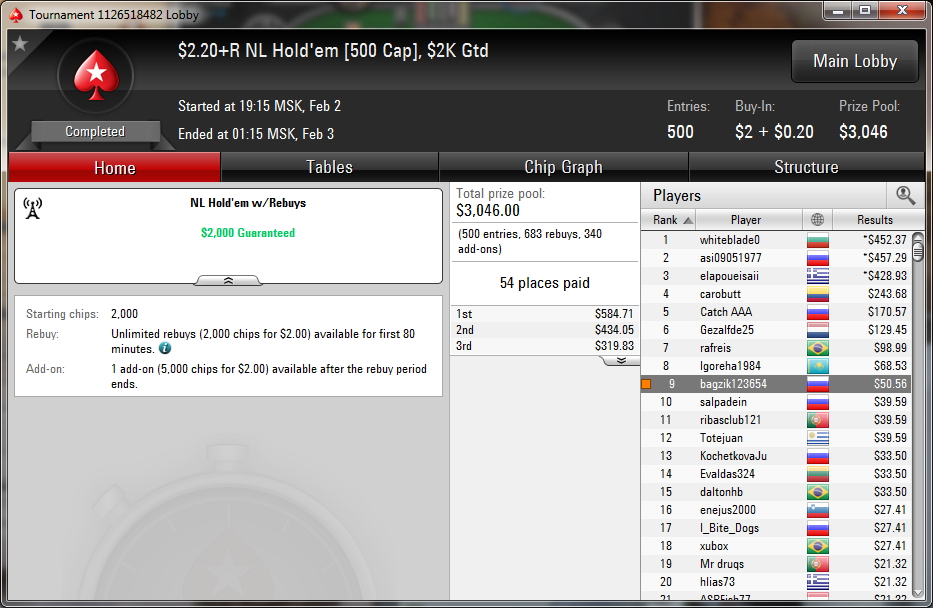 Мне, например, выпадал билет на фризаут за 33 $ за те же 10 000 монет. Там же тоже градация (на 3 ступени, если ничего не поменялось): чем больше монет за участие, тем бОльший приз вероятность взять (максимум был вроде билет за 200 $ или денежный приз аналогичный при "стоимости участия" в 100 000 монет)