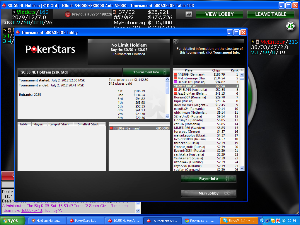 Тем самым я вернул своё положение в турнире и даже улучшил. В итоге играл практически до конца, 8+ часов. Немного обидно, что вылетел 4, хотя мог быть и выше, но так случилось, впёрся с 77 в АА