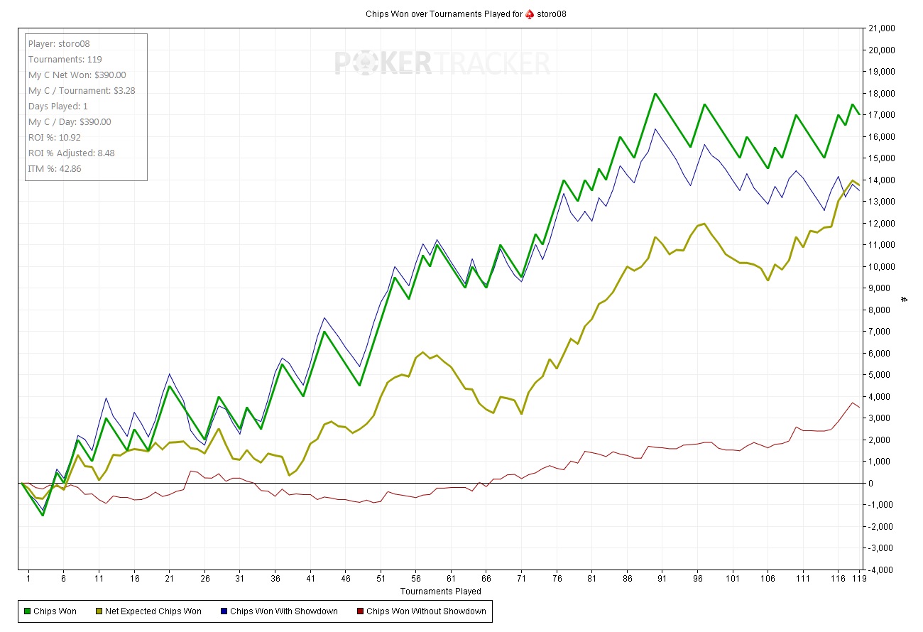Решил всё-таки попробовать поиграть эту игру, так как сейчас например в мой кэш капы зум, вообще нет не одного игрока, все фиши в новый вид покера ушли Обо мне можно прочитать в блоге. Я регулярно играю в игры с стеком 25-20 бб, кэш и плотно играл sng hu ht, а также мтт хедзап, в основном недорогие. Примерно с сентября 2012 года. До этого долго играл кэш 9 макс. Последние полгода играю капы зум хедзап, Nl50-NL100-NL200, графики и результаты выкладывал порой ежедневно, поэтому опять тех кто незнаком со мной отправляю их в свой блог. Последний минусовой месяц был в мае 2013 года, и то потому что я играл оффлайн турниры на РПС-Киев, в онлайне же очень давно не заканчивал в минус. В сентябре 2013 года только был месяц, околонулевой (+110$) и то, потому что очень мало играл в этом месяце. Считай отдыхал. Очень подробную статистику текстовыми файлами, по доходам и расходам от покера веду, с середины 2012 года, кому нужно из дольщиков покажу. Также, являюсь тренером по hu ht sng. ******** Изложу теперь суть своего предложения, и почему я хочу продать долей, а не играть за свои. По расчётам регуляров, с некоторыми из которых я знаком по скайп конфе, в эту игру нужно 1000 баинов. Рейк на 30-ом лимите 4%. Играть дешевле смысла не вижу, поле пока очень слабое, и я рассчитываю показать ROI не менее 5-6%. Пока в этой дисциплине куча слабого левого народа: фиши, реги с других дисциплин, которые понятия не имеют, что делать с такими стеками и т.п. Вообще хочу откатать для пробы 5000 игр, играть дешево учитывая слабость поля, смысла не вижу. Внесу свои 1500$ и 1500$ продам. Условия продажи: 1. 50% = 1500$ игрока, 50%=1500$ дольщиков 2. Рейкбек и бонусы игроку 3. Откат от чистого профита 35%, от той половины что внесут дольщики. Грубо говоря, треть прибыли которая предполагаемо будет получена дольщиками от инвестиции будет моя. 4. Если по EV 5000 игр сыграю, в плюс, а профит будет в минус, то можем повторить пакет, дабы дать отбиться дольщикам. ![]() 5. Время на отыгрыш порядка месяца, играть буду 2-4 стола, желательно 4 конечно, если выпал 10х и выше, то пока не доиграю его, не открываю столы. Штук 200 в день хотяб. 6. Призовые не делю с игроками, буду пытаться реализовывать перевес над ними. Если выпадет (а вдруг!) на 30к, то рассмотрю дележку если игроки по шарку слабые. Право не с кем не делить, оставляю за собой. Сам пакет это неплохой шанс для дольщиков сорвать куш если мне зайдет, максимальный джекпот 30000$ за 1 место. Опыт выигрывания джекпотов также имеется ![]() Минимальная доля: 2,5%= 75$ Методы расчётов: PS, FTP, skrill, YandexMoney. Cписок дольщиков: storo08 =50% 1500$ С 15-го игрового дня, моя доля 75% 2250$ ***** chichuck =2,5% 75$ Выплата: 324,60$. berg =22,5% 675$ Выплата: 2921.40$ ***** Makki =25% 750$ Зафиксировал профит после 14го дня игры, выплачено: 2183.25$ Ну и конечно, самое прикольное: тут буду постить отчёты, скрины и прочее, вообщем будет весело. ![]() В целом есть уверенность, что я буду на порядок лучше поля с таким рейком, иначе бы не брался. |