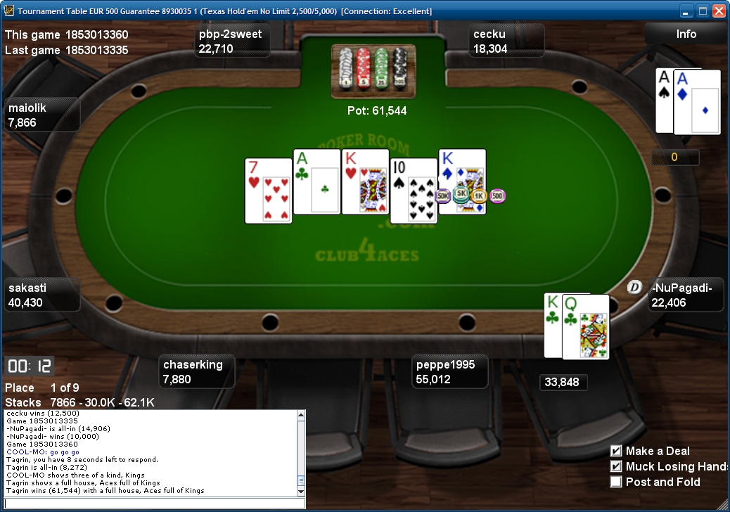 Для тех кто еще не в курсе, организовывается коллективный бэккинг, для игры в хороших турнирах, в целях сплочения рядов, улучшения скилла и наживы денег. Список вкладчиков и суммы (доли) на 21.12.2011г. Порядок расчетов: 1 Взносы участников суммируются и определяется доля каждого по отношению к БР на момент старта турнира (в течение турнира взносы не принимаются) а) Взнос С4А poker учитывается обычном порядке, но вывод средств не допускаеться, а направляеться на увеличение БР копилки (по достижении суммы доли С4А poker е1000 часть, но не больше 30%, может быть использована С4А poker по своему усмотрению). 2 При распределении дивидендов применяются следующие правила: а) Дольщикам выплачивается, согласно долям 30% суммы выигрыша, но не меньше е5 (сумма меньше добавляется к первоначальному взносу (сумме взноса перед турниром-заносом) и увеличивает долю участника при распределении последующих выигрышей) б) 60% идет на капитализацию БР копилки (по достижении суммы в е1000 пропорция может быть пересмотрена в сторону увеличения выплат) в) 10% (и рейкбек) выплачивается игроку или по желанию добавляется во взнос-долю участника. г) Игрок дополнительно премируеться в размере 10% доли С4А poker 3 При уменьшении суммы БР меньше первоначального в 2 раза дивиденды не выплачиваются (кроме 10% игрока) 4 Доля одного пайщика не может превышать 50% от суммы копилки. (в случае превышения производиться автоматическое перечисление денег пайщику. (прим. в случае с С4А poker сумма превышающая порог, распределяется между пайщиками в пропорции равной вкладам на момент превышения) 5 Величина пая не даёт преимущества и привилегий в решении вопросов. 6 При желании выйти из числа пайщиков, участнику выплачивается 100% его доли на момент заявления (заявление не допустимо во время турнира). 7 При переводе денег с использованием платёжных систем, взимающих комиссию за свои услуги соблюдаются следующие правила: а) В случае исполнения обязательных платежей (возмещение игроку затрат собственных средств на БИ, перевод игроком выигрыша в копилку и т.п.) комиссия покрывается денежными средствами копилки. (Например:Fanat при переводе 52е выигрыша, в копилку через вебмани, переводит - €51,59 и платит комиссию €0,41 (комиссия за перевод в ВМ = 0,8%) Пересчёт долей пайщиков в связи с этими потерями, производиться перед выплатой дивидендов или полном расчёте с пайщиком. б) В случае исполнения заявленных платежей (выплата дивидендов, полный расчёт с пайщиком, и т.п.) оплата комиссии производиться за счёт получателя. (Например: Оплата Fanatу приза за занос -7,61 (от которого он отказался, в пользу увеличения своей доли в копилке) если с ВМ: перевожу €7,55 - комиссия €0,06, Fanat получает -€7,55). 8 Сумма по акции "Пополни копилку" зачитываеться так, 50% из выигранной (за минусм БИ) в "благотворительном" турнире суммы идет в увеличение доли игрока, 50% плюсуется, не изменяя величину доли. Рум: С4а Сыграны турниры за ...: Нет Заявки на перевод средств на БИ оставлять не менее чем за 30 минут до начала турнира в ветке. Ссылка для обсуждения: Тема "Коллективный бэккинг Вигориш, предложения путей развития, фан трибуна": /section91/topic6364-80.html Способы связи и просмотра: Бар ----------------------> /bar/ Skype --------------------> Vigorish.ru На данном этапе возможно только через Тимвивер скачать ------------------> http://www.teamviewer.ru Способы внесения денежных средств: E495745385150 Z377663063691 При переводе указывать ник н