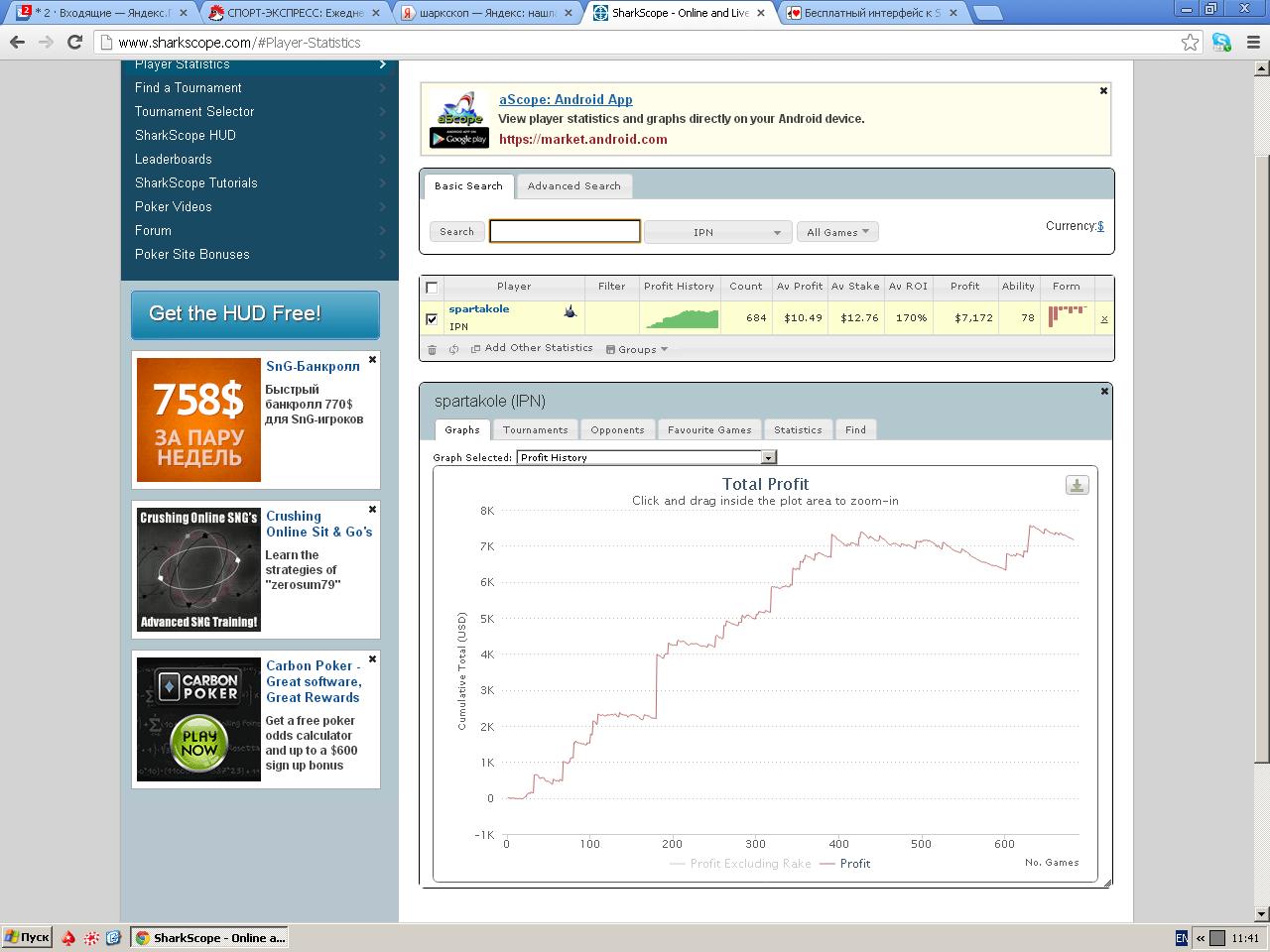 Итак вот он: 5 турниров 500 GTD REBAY за 5+0,50 евро в 12.00 МСК. Закладываю 3 ребая и один адд-дон, всего 25,50 евро на один турнир, итого – 127,50 евро. 5 турниров 2000 GTD REBAY за 10+1,0 евро в 20.00 МСК. Закладываю 2 ребая и один адд-дон, всего 41,00 евро на один турнир, итого – 205,00 евро. 5 турниров 4000 GTD REBAY за 10+1,0 евро в 22.00 МСК. Закладываю 2 ребая и один адд-дон, всего 41,00 евро на один турнир, итого – 205,00 евро. 5 турниров 2500 GTD REBAY за 2+0,20 евро в 23.00 МСК. Закладываю 5 ребаев и один адд-дон, всего 14,20 евро на один турнир, итого – 71,00 евро. 5 турниров 5000 Daily GTD за 25+2,50 евро в 23.30 МСК. итого – 127,50 евро. Общая стоимость бай-инов – 736 евро Продам половину, т.е. 368 евро Мин.доля 1% - 3,68 евро В пересчете на доллары стоимость составит 368*1,29=475 баксов Мин. доля в баксах 1% - 4,75 $ Все турниры не турбо, с уровнями 10-15 минут. Народу в них собирается относительно немного 100 - 200 чел (в дневном за 5+0,50 и того меньше 50-60 чел, а в дешевом вечернем за 2+0,20 до 400 чел, но там куча непонятных людей которые вылетают в первый час игры), играются по 3-4 часа. Ранее играл в данном руме практически те же турниры вот с такими результатами: Предпочтительные способы оплаты: moneta.ru, WebMoney, Skrill Ну что еще написать? Почему продаю? На сегодняшний день скудноватый банкролл для таких турниров, ну и думаю беккинг поспособствует улучшению моей дисциплины и я буду играть более собрано. Первый раз составляю подобные предложения поэтому извините если что не так...готов исправиться ![]() Список дольщиков: NoPair - 10% бронь Katamaran84 - 10% бронь Lombardy4 - 10% бронь Последний раз редактировалось spartak2009 09 дек 2012, 13:37, всего редактировалось 7 раз(а).
